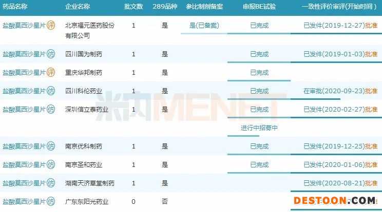 米內(nèi)網(wǎng)數(shù)據(jù)顯示,目前已有東陽光藥、信立泰等9家企業(yè)的鹽酸莫西沙星片通過或視同通過一致性評價,其中東陽光藥為首家過評;此外還有揚子江、海正等10家企業(yè)的產(chǎn)品以新分類報產(chǎn),目前還在審。