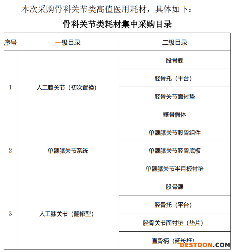 具體涉及人工膝關(guān)節(jié)、單髁膝關(guān)節(jié)系統(tǒng)、人工髖關(guān)節(jié)、假體周圍骨折鋼板、一次性骨水泥真空攪拌套件等29大類54個(gè)品種的骨科耗材。