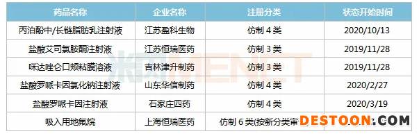 12家企業(yè)提交丙泊酚中/長(zhǎng)鏈脂肪乳注射液一致性評(píng)價(jià)補(bǔ)充申請(qǐng)或以新分類報(bào)產(chǎn),江蘇盈科生物的產(chǎn)品率先獲批生產(chǎn)并視同過(guò)評(píng),為國(guó)內(nèi)首家,科倫藥業(yè)沖刺第2家過(guò)評(píng)。
