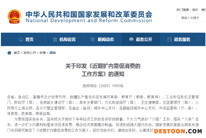 11月2日訊 10月29日,國家發(fā)改委官網(wǎng)發(fā)布《關于印發(fā)<近期擴內需促消費的工作方案>的通知》(以下稱《通知》)。為抓好“六穩(wěn)”工作、落實“六保”任務,進一步擴大內需特別是有效促進消費,推動經(jīng)濟供需循環(huán)暢通,促進形成強大國內市場,包括國家發(fā)改委在內的14個部門共同研究制定了該方案。