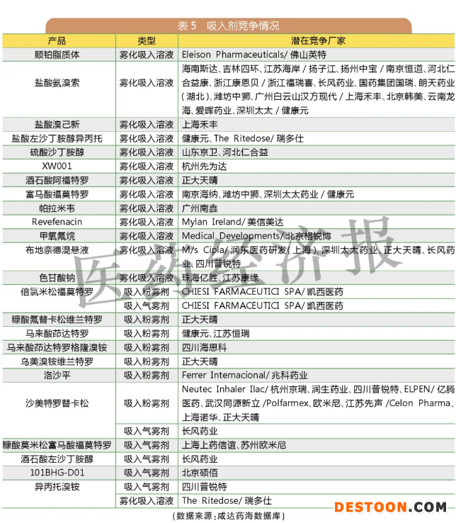 扎堆產(chǎn)品:鹽酸氨溴索(霧化吸入溶液)、沙美特羅替卡松(吸入粉霧劑)、布地奈德混懸液(霧化吸入溶液)