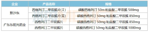 表1:目前市場上西格列汀二甲雙胍的產品情況