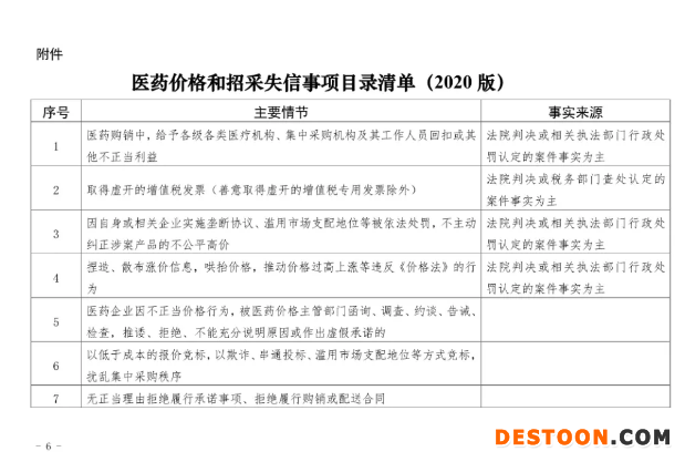 按照此前要求,醫(yī)藥價格和招采失信事項目錄清單將實行動態(tài)調(diào)整制度。列入目錄清單的失信事項主要包括在醫(yī)藥購銷中給予回扣或其他不正當利益(以下簡稱“醫(yī)藥商業(yè)賄賂”)、涉稅違法、實施壟斷行為、不正當價格行為、擾亂集中采購秩序、惡意違反合同約定等7項有悖誠實信用的行為。