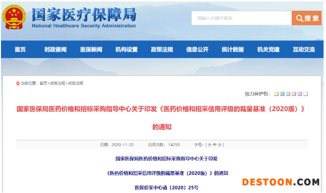 11月20日,國家醫(yī)保局接連發(fā)布了兩則《關(guān)于印發(fā)醫(yī)藥價格和招采信用評級的裁量基準(2020版)的通知》以及《關(guān)于印發(fā)醫(yī)藥價格和招采信用評價的操作規(guī)范(2020版)的通知》(以下簡稱《通知》)。