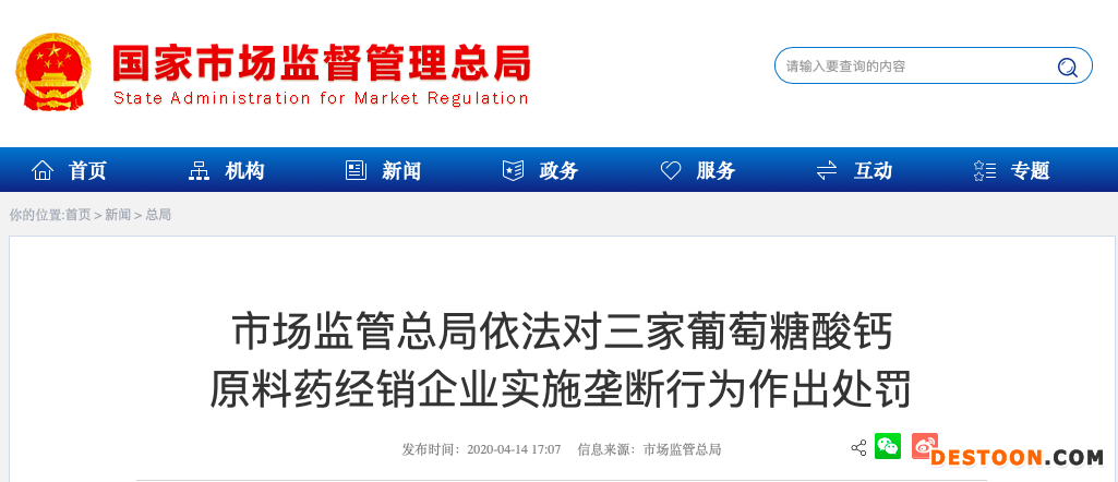 早在今年4月份,國(guó)家市場(chǎng)監(jiān)管總局開(kāi)出迄今為止原料藥領(lǐng)域最大罰單——罰沒(méi)款共計(jì)3.255億元。三家公司上下其手包銷(xiāo)原料藥牟利長(zhǎng)達(dá)2年,這一原料藥就是葡萄糖酸鈣的原料藥。