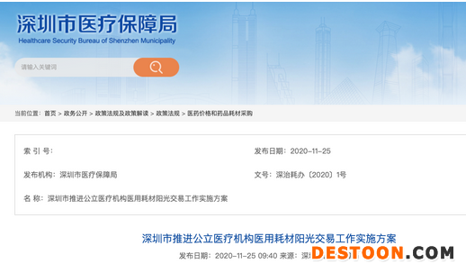 11月25日,深圳市醫(yī)保局發(fā)布《深圳市推進公立醫(yī)療機構醫(yī)用耗材陽光交易工作實施方案》,據悉全市公立醫(yī)療機構將通過深圳醫(yī)用耗材陽光交易和監(jiān)管平臺(以下簡稱“深圳陽光平臺”)采購醫(yī)用耗材,將執(zhí)行全國醫(yī)保醫(yī)用耗材統(tǒng)一分類和編碼標準。