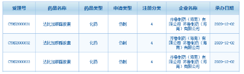 圖1:齊魯制藥的達比加群酯膠囊注冊情況