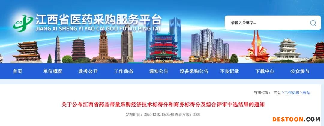 近日,江西省醫(yī)藥采購(gòu)服務(wù)平臺(tái)發(fā)布了《關(guān)于公布2020年江西省藥品帶量采購(gòu)經(jīng)濟(jì)技術(shù)標(biāo)得分綜合評(píng)審結(jié)果及中選結(jié)果的通知》。