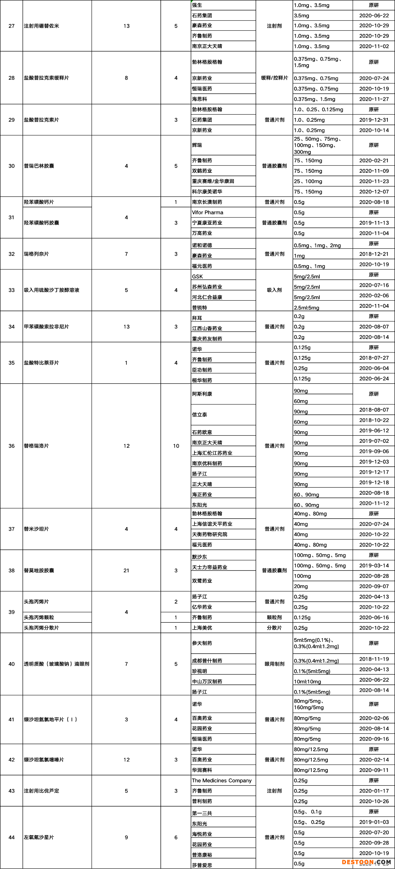 其中,齊魯制藥有7個產(chǎn)品進入集采名單中,分別是氨磺必利片、注射用帕瑞昔布鈉、注射用硼替佐米、普瑞巴林膠囊、鹽酸特比萘芬片、頭孢丙烯顆粒、注射用比伐蘆定;揚子江藥業(yè)則是多索茶堿注射液、氯雷他定片、注射用泮托拉唑鈉、替格瑞洛片、頭孢丙烯片、透明質(zhì)酸(玻璃酸鈉)滴眼劑6個品種進入。