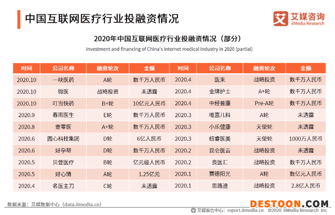 疫情背景下,互聯(lián)網(wǎng)醫(yī)療作為重要發(fā)展方向,更受資本青睞。今年以來(lái),尤其是在疫情期間,互聯(lián)網(wǎng)巨頭加大投入在互聯(lián)網(wǎng)醫(yī)療方面的布局。2020年1月至10月,醫(yī)療健康領(lǐng)域融資金額超過(guò)500億元,互聯(lián)網(wǎng)醫(yī)療行業(yè)競(jìng)爭(zhēng)進(jìn)入白熱化。