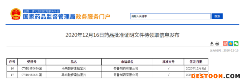 齊魯制藥馬來酸伊索拉定片通過一致性評價補充申請