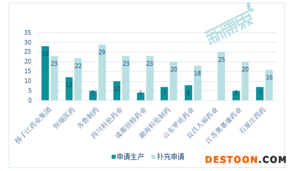 從注射劑一致性評價(jià)申報(bào)情況來看,申請生產(chǎn)以及補(bǔ)充申請較多的企業(yè)為揚(yáng)子江藥業(yè)、恒瑞醫(yī)藥、齊魯制藥、四川科倫藥業(yè)等等,既有大型仿制藥生產(chǎn)企業(yè),也有像科倫藥業(yè)這樣專注于注射劑的龍頭。