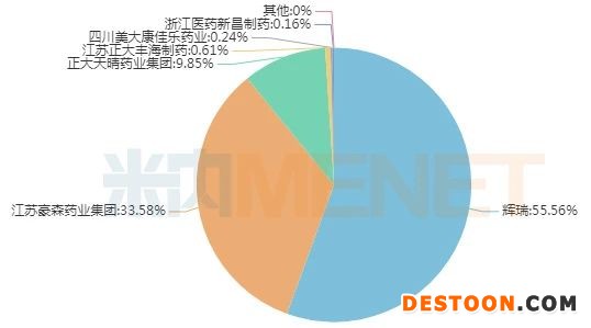 米內(nèi)網(wǎng)數(shù)據(jù)顯示,近年中國城市公立醫(yī)院、縣級(jí)公立醫(yī)院、城市社區(qū)中心以及鄉(xiāng)鎮(zhèn)衛(wèi)生院(簡稱中國公立醫(yī)療機(jī)構(gòu))終端利奈唑胺注射劑均保持20%的增速,2019年銷售額超過18億元;今年上半年增速有所下滑。利奈唑胺葡萄糖注射液生產(chǎn)企業(yè)有輝瑞、江蘇豪森藥業(yè)、正大天晴藥業(yè)、江蘇正大豐海制藥等10家。其中,輝瑞的市場份額最大,占比超過50%;其次是江蘇豪森藥業(yè)33.58%。值得注意的是,近年隨著國內(nèi)藥企發(fā)力,輝瑞的市場份額逐步下滑,從2016年超過90%下滑至今年上半年的55.56%。