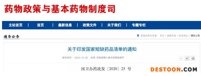 12月29日,國(guó)家衛(wèi)健委發(fā)布《關(guān)于印發(fā)國(guó)家短缺藥品清單的通知》并同時(shí)發(fā)布“國(guó)家短缺藥品清單”和“國(guó)家臨床必需易短缺藥品重點(diǎn)監(jiān)測(cè)清單”。