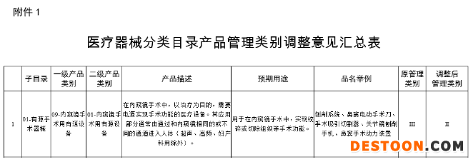15類醫(yī)療器械管理類別進(jìn)行調(diào)整。