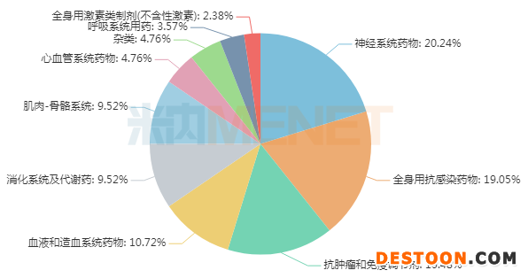 過評(píng)注射劑藥品治療領(lǐng)域(大類)分布