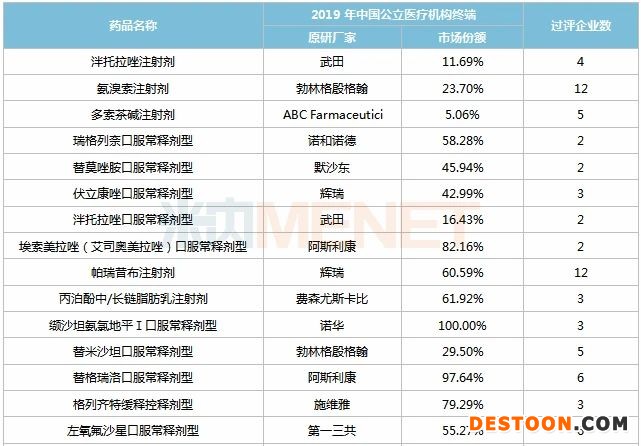 據(jù)米內(nèi)網(wǎng)統(tǒng)計(jì),諾華和勃林格殷格翰均有5個品種被納入第四批集采,輝瑞和阿斯利康均有3個品種涉及。45個品種中,21個品種的原研藥企2019年在中國公立醫(yī)療機(jī)構(gòu)終端占據(jù)的市場份額超過50%,其中7個品種由原研藥企獨(dú)占市場,且索拉非尼口服常釋劑型、纈沙坦氨氯地平Ⅰ口服常釋劑型銷售額超過10億元,原研藥企會否積極競標(biāo)值得關(guān)注。