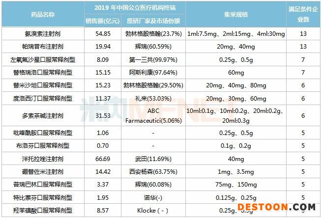 滿足條件企業(yè)數(shù)達(dá)5家及以上的藥品