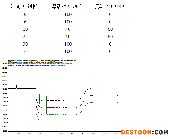 柱溫40℃;檢測(cè)波長(zhǎng)220nm;流速1ml/min;進(jìn)樣量20μl;供試品濃度:1mg/min