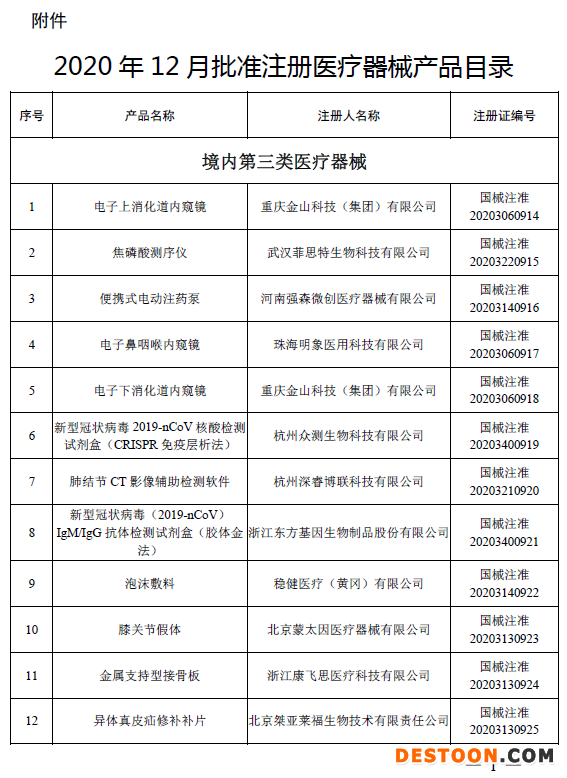 附件:2020年12月批準(zhǔn)注冊(cè)醫(yī)療器械產(chǎn)品目錄