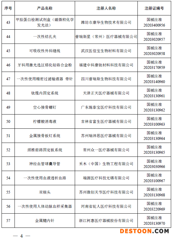 1月20日訊 2020年12月,國家藥品監(jiān)督管理局共批準(zhǔn)注冊(cè)醫(yī)療器械產(chǎn)品155個(gè)。其中,境內(nèi)第三類醫(yī)療器械產(chǎn)品108個(gè),進(jìn)口第三類醫(yī)療器械產(chǎn)品24個(gè),進(jìn)口第二類醫(yī)療器械產(chǎn)品20個(gè),港澳臺(tái)醫(yī)療器械產(chǎn)品3個(gè)(具體產(chǎn)品見附件)。