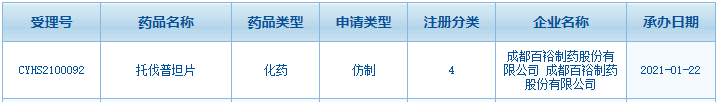 圖1:成都百裕制藥的托伐普坦片申報情況