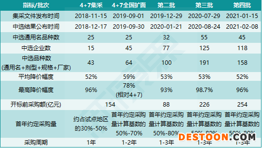 圖表1. 前四批(五輪)國家組織藥品集中采購的概況(2021.2)