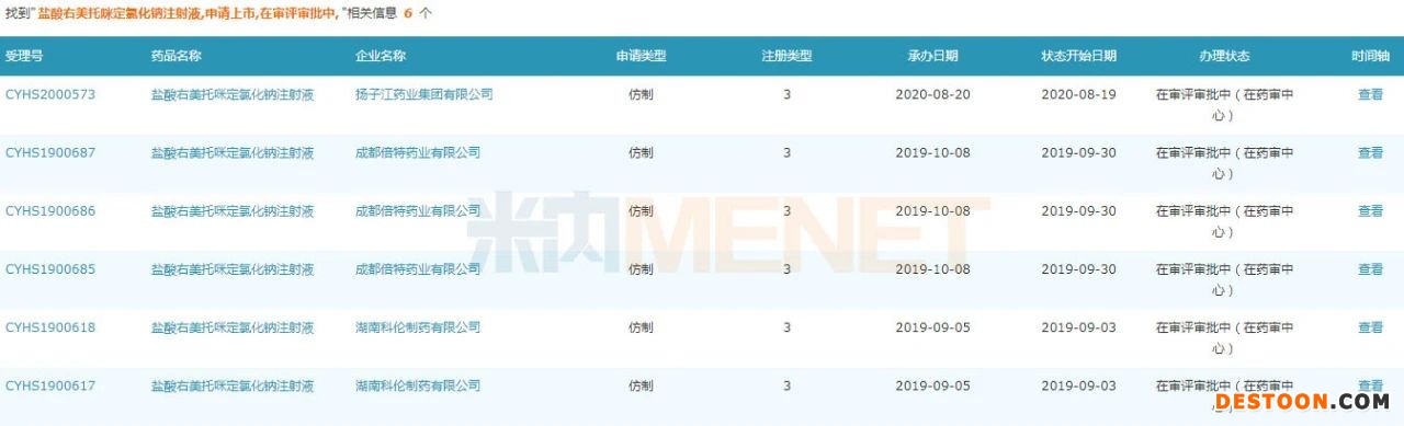 截至目前,鹽酸右美托咪定注射液已有江蘇正大清江制藥、石藥銀湖制藥、石家莊四藥等7家企業(yè)以仿制3類(lèi)提交上市申請(qǐng)?jiān)趯徳u(píng)審批中(在藥審中心),鹽酸右美托咪定氯化鈉注射液有揚(yáng)子江藥業(yè)集團(tuán)、湖南科倫制藥、成都倍特藥業(yè)3家企業(yè)以仿制3類(lèi)提交上市申請(qǐng)?jiān)趯徳u(píng)審批中(在藥審中心),獲批后將視同過(guò)評(píng)。