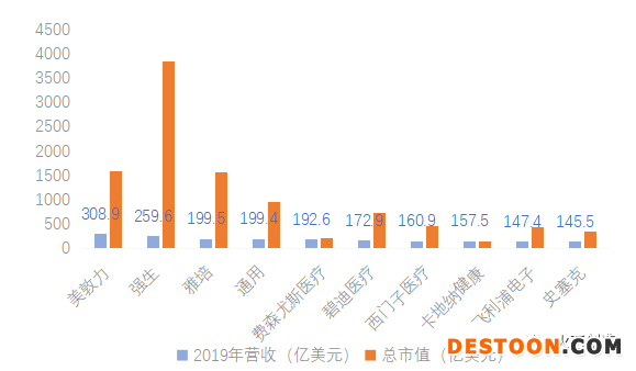 圖3 2019年全球營收TOP10的醫(yī)療器械企業(yè)