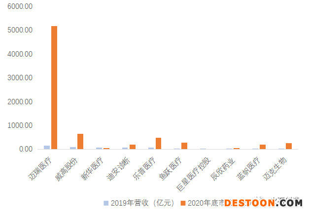 圖6 2019年中國上市營收TOP10的醫(yī)療器械企業(yè)(億元)