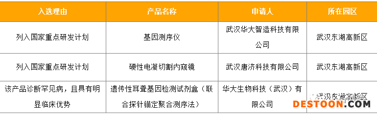 2016-2020年武漢市共有3個醫(yī)療器械產(chǎn)品通過優(yōu)先審批程序上市,3個產(chǎn)品企業(yè)均位于東湖高新區(qū),其中武漢華大智造的“基因測序儀”及武漢唐濟科技的“硬性電凝切割內(nèi)窺鏡”以“列入國家重點研發(fā)計劃”理由入選。