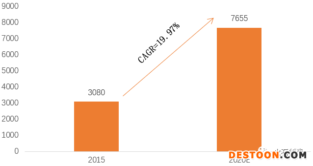 圖4 2015及2020E年中國醫(yī)療器械行業(yè)市場規(guī)模情況(億元)