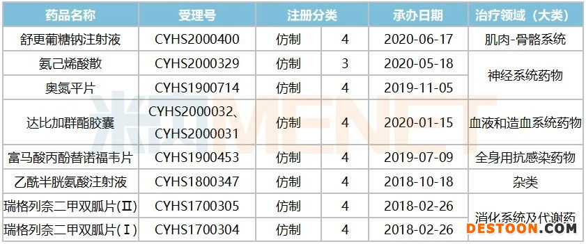 表4:截至2020年苑東生物申報上市并在審的產(chǎn)品情況