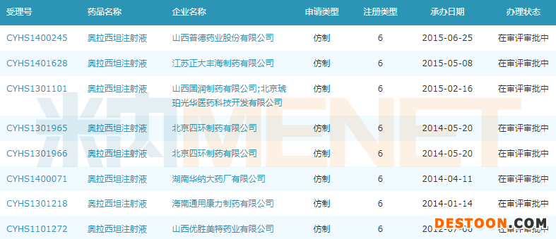奧拉西坦片生產(chǎn)廠家僅有華北制藥,奧拉西坦膠囊、注射用奧拉西坦生產(chǎn)廠家均有2家。隨著信泰制藥的奧拉西坦注射液獲批,該產(chǎn)品生產(chǎn)廠家已有13家。此外,奧拉西坦注射液還有7家企業(yè)的上市申請在審評審批中,包括正大豐海、華納大藥廠、四環(huán)制藥等。