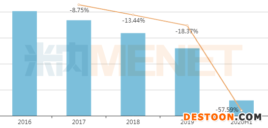 米內(nèi)網(wǎng)數(shù)據(jù)顯示,近年來奧拉西坦注射液在中國城市公立醫(yī)院、縣級公立醫(yī)院、城市社區(qū)中心以及鄉(xiāng)鎮(zhèn)衛(wèi)生院(簡稱中國公立醫(yī)療機構(gòu))終端銷售額持續(xù)下滑,從2016年的80億元下滑至2019年的51.9億元。