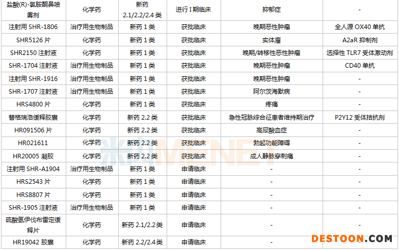 恒瑞醫(yī)藥新分類(lèi)報(bào)產(chǎn)且暫無(wú)首仿獲批的品種
