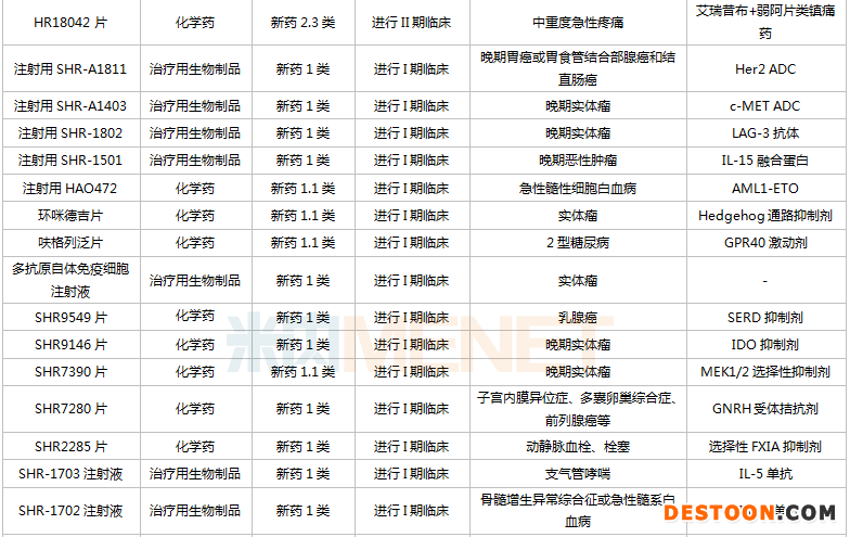 恒瑞醫(yī)藥重點(diǎn)在研新藥