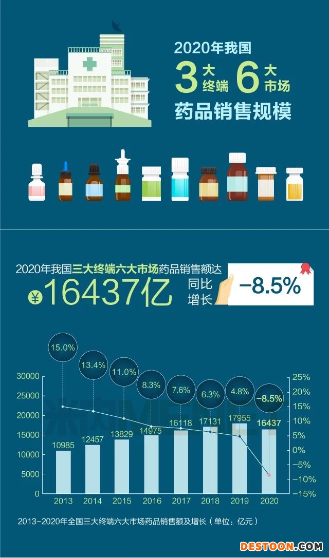 去年我國終端六大市場藥品銷售額16437億同比負(fù)增長8.5%