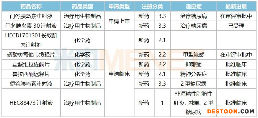 表4:2021年至今東陽光藥申報的新藥情況