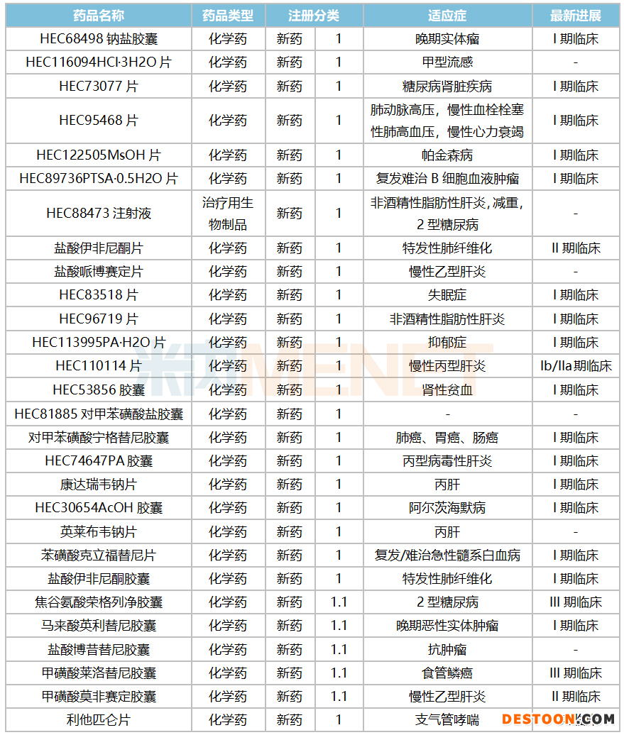 表5:東陽光藥在研的1類新藥最新情況