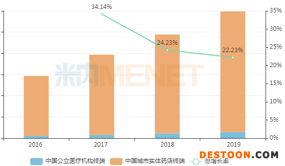 中國公立醫(yī)療機構及中國城市實體藥店終端度洛西汀銷售情況