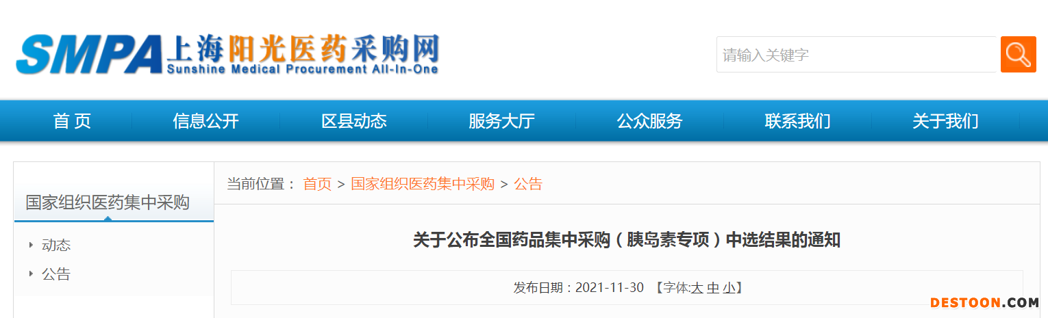 11月30日下午,上海陽光醫(yī)藥采購網(wǎng)發(fā)布公告稱,根據(jù)《全國藥品集中采購文件(胰島素專項)(GY-YD2021-3)》規(guī)定,聯(lián)合采購辦公室開展了胰島素專項集中采購工作,現(xiàn)公布中選結(jié)果(詳見附件),具體執(zhí)行日期另行公告。