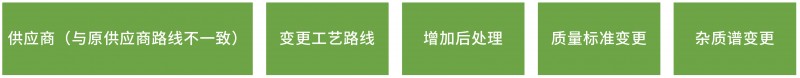 案例:某原料藥,由于起始原料供應(yīng)商不再供貨,對生產(chǎn)工藝的進(jìn)一步研究及制劑對原料藥質(zhì)量要求的提高,擬進(jìn)行一系列變更: