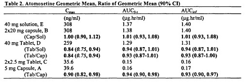 筆者認(rèn)為FDA綜述對于臨床研究公布的更為詳細(xì),報告中會匯總原研開發(fā)過程中所進(jìn)行的各種臨床試驗,包括不同劑型的藥動學(xué)研究;處方變化的生物等效性研究;食物對于藥物吸收的影響;不同人群吸收的影響等,下面以托莫西汀膠囊為例,解讀相關(guān)文獻(xiàn)。